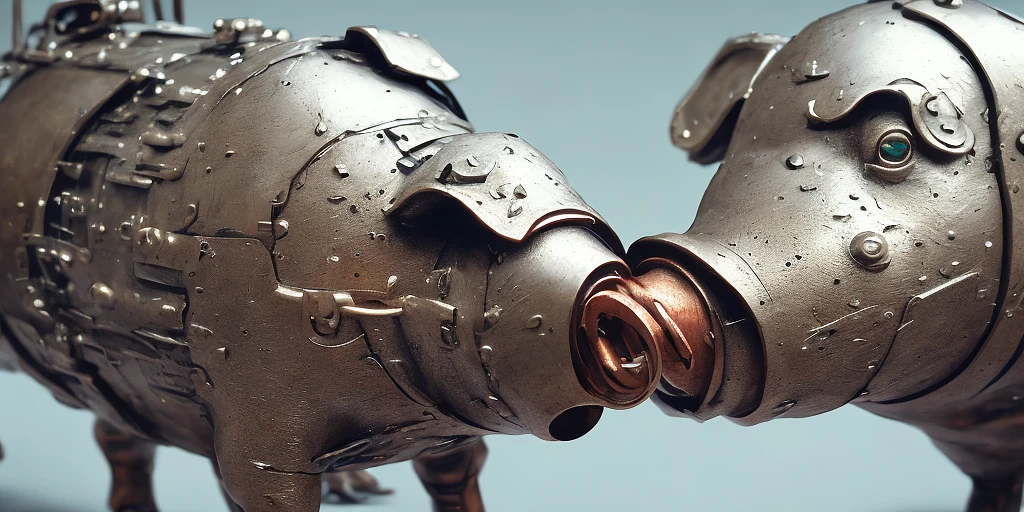 a close up of a metal sculpture of a pig, concept art, by Artur Tarnowski, renaissance, armored dieselpunk wardrobe, beeple