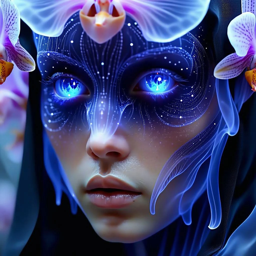 Goddess close-up portrait ribcagel. jellyfish phoenix head, nautilus, orchid, skull, betta fish, bioluminiscent creatures, intricate artwork . octane render, trending on artstation, t symmetrical artwork. cinematic, hyper realism, high detail, octane render, 8k