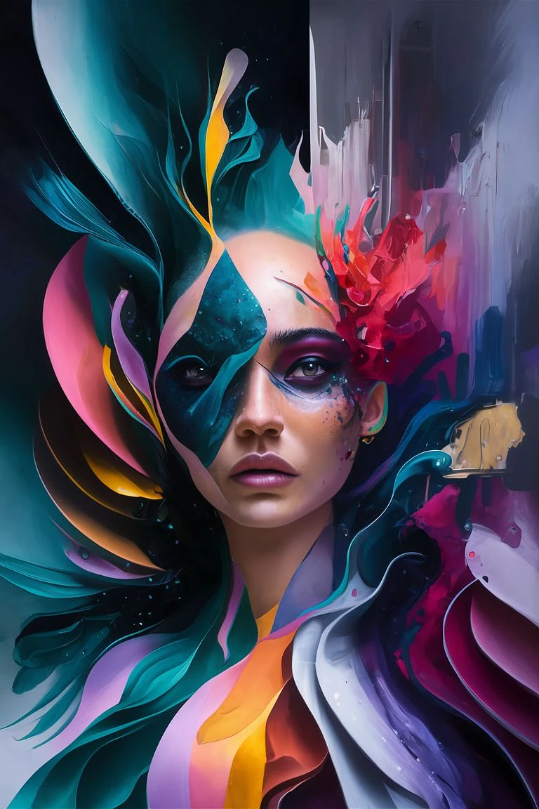 A stunning collection of abstract paintings that delve into the connection between color, shape, and emotion. The series showcases a diverse range of brushstrokes and mark-making techniques, with vibrant hues and dynamic forms that create a captivating visual experience. The composition of shapes is thoughtful and well-balanced, using negative space to achieve equilibrium and harmony. The overall atmosphere is a blend of dark fantasy, cinematic, and fashion elements, resulting in a unique and captivating piece that draws the viewer in. , product, typography, portrait photography, dark fantasy, painting, poster, graffiti, vibrant, conceptual art, 3d render, photo, cinematic, fashion