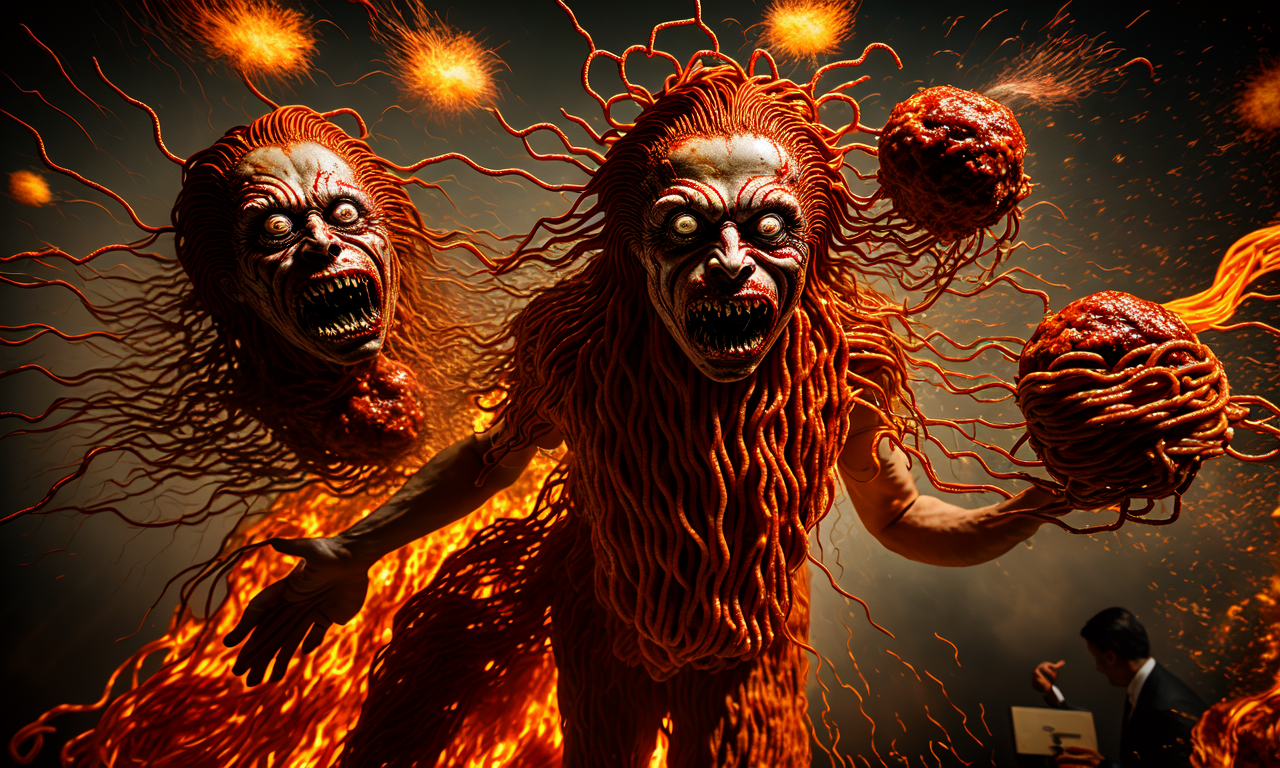 Openjourney prompt: (photo)+ of the spaghetti demon inside the Spectru...
