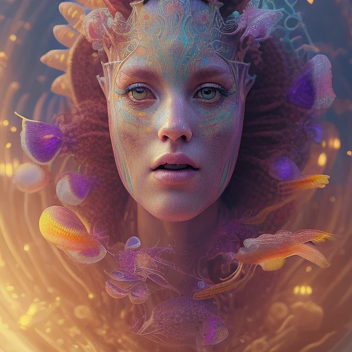 Goddess close-up portrait ribcagel. jellyfish phoenix head, nautilus, orchid, skull, betta fish, bioluminiscent creatures, intricate artwork . octane render, trending on artstation, t symmetrical artwork. cinematic, hyper realism, high detail, octane render, 8k