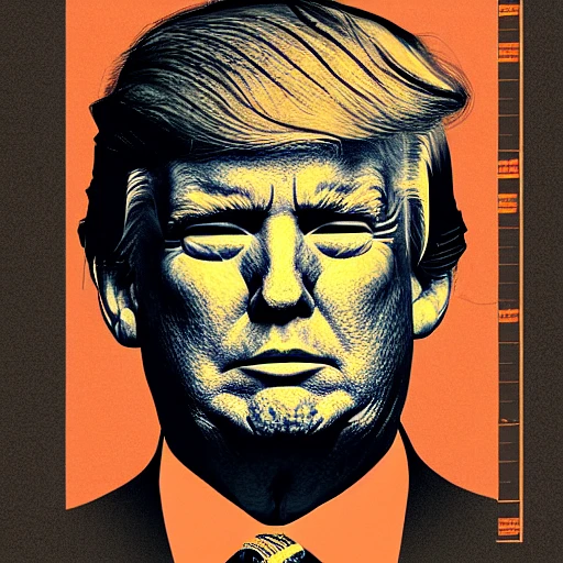 portrait trump, new york times illustration, collage, infographic, chart, data visualisation artwork, schematics, diagram, measurements, marginalia, scientific, intricate, typography, eyes on portrait face, surreal