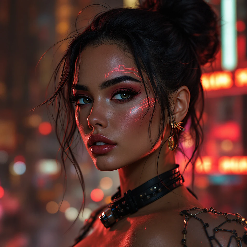 https://s. mj. run/kPXAdpGT3PQ using this image draw up a latina chick that belongs to they cyberpunk world realistic instagram model --v 6. 1 like malin akerman as laurie jupiter