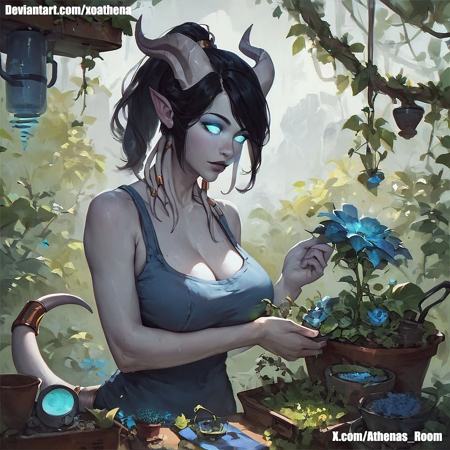 *On her first day free, Beth suggests Athena to go downstairs towards the building's greenhouse, they do some Gardening as they get to know eachother further* Yesterday it was a mess, I am not sure if this Job is for me Beth *Says Athena*
