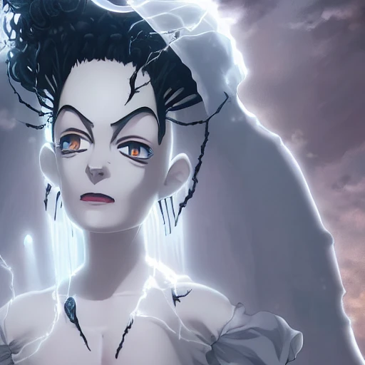 bride of frankenstein, close-up, anime, ultra-detailed, white background, HD design by makoto shinkai, Granblue Fantasy,