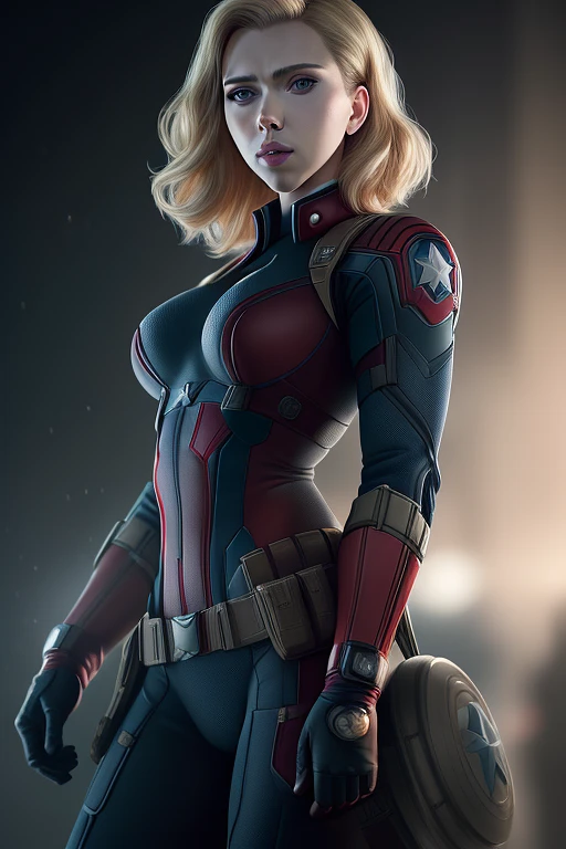 a photorealistic portrait of scarlett johansson, ((wearing a captain america suit) ), full body portrait, shot with Sony Alpha a9 II and Sony FE 200-600mm f/5. 6-6. 3 G OSS lens, natural ligh, hyper realistic photograph, ultra detailed –ar 3:2 –q 2 –s 750, 4k.