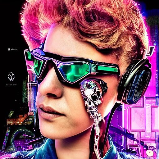 nft style, cyberpunk, synthwave, tarot card with intricate detailed frame around the outside | with cyberglasses neon, and earphone, dj sound, futuristic, gold, diamond, side profile of cyberpunk body with cyborg skull | cyberpunk | styled in Art Nouveau | insanely detailed | embellishments | high definition | concept art | digital art | vibrant, hyperdetailed, intricate, kaleidoscope, extremely beautiful, ranking ligth, cinematic lighting, photo realistic, white background max detail, ranking ligth, cinematic lighting, photo realistic, by mandy jurgens, moebus, jon foster, alphonse mucha, glazing, pablo picasso, pinot noir, chiaroscuro, leonardo da vinci, Michelangelo, 8k