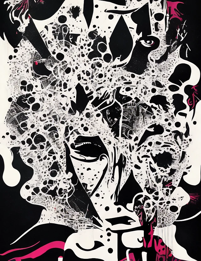 Unapologetic, Perfectcore, bizarre, freaky graphic poster, lust, futuristic, strong graphic, line, Behance, award - winning, extraordinary, modern, screen print, old paper background, use many shapes, no frames, surrealism matte background melting oil on canvas, dark colors, demonic in nature