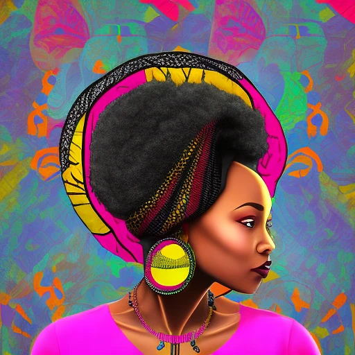 Black silhouette of african american woman in a colorful head wrap and with an earring. Beautiful black girl profile