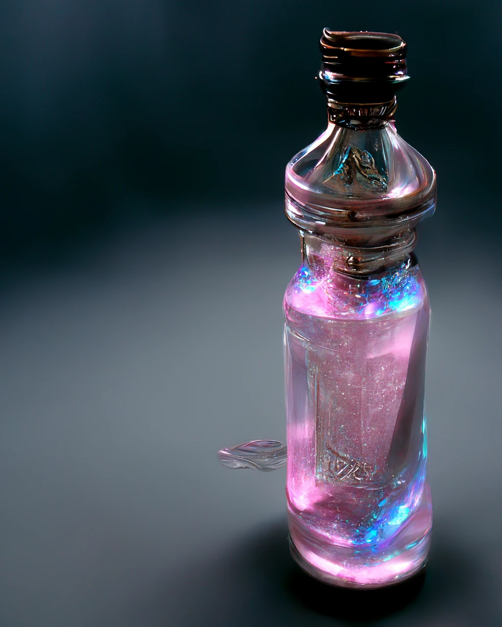 arcane vial of transgender potion. Bottle is shimmering and glimmering and swirling with internal glow of pink and white and sky blue. Bottled trans essence. Bottle is centered in the image. Magic the gathering. Dungeons and dragons. photorealistic, ultra high definition, cinematic, crisp shadows, octane, 8k unreal engine foreground focus, cryengine, blender, insanely detailed bottle contents, vfx, post processing, macro shot --aspect 9:12