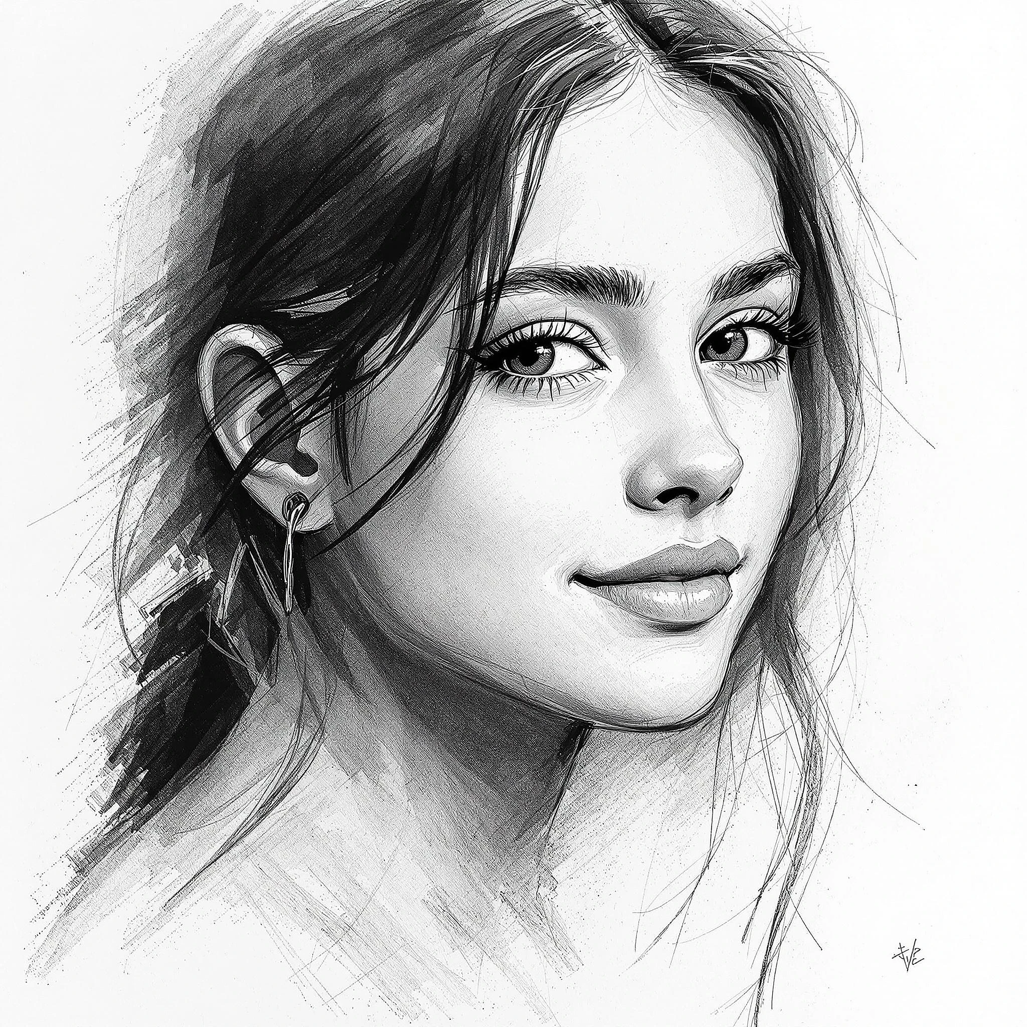 Simple pencil sketch by Odilon Redon, drawing, face only, a gorgeous Brazilian teenage girl, hint of a smile, noticeable charcoal marks, white background, no coloring, no color --ar 69:128 --personalize 2gwf1qc --stylize 750 --v 6. 1