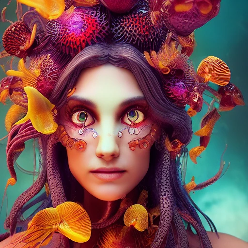 Goddess close-up portrait ribcagel. jellyfish phoenix head, nautilus, orchid, skull, betta fish, bioluminiscent creatures, intricate artwork . octane render, trending on artstation, t symmetrical artwork. cinematic, hyper realism, high detail, octane render, 8k
