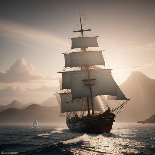 Photo of a ultra realistic sailing ship, dramatic light, pale sunrise, cinematic lighting, battered, low angle, trending on artstation, 4k, hyper realistic, focused, extreme details, unreal engine 5, cinematic, masterpiece, art by studio ghibli, intricate artwork by john william turner