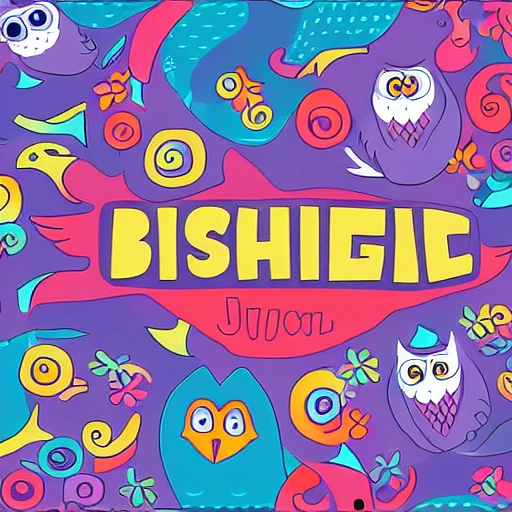splash screen design for YouTube, white background and doodle graphics, illustration, many details, lines, owls, birds, fish, dragonflies