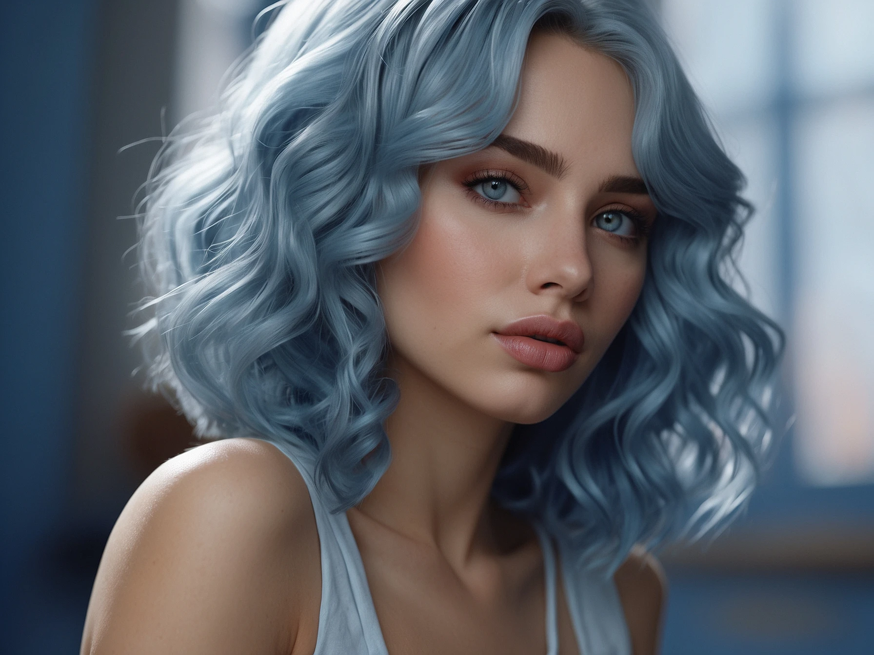 a close up of a person with blue hair, a colorized photo by Lü Ji, trending on cg society, rococo, seapunk, anime, anime aesthetic