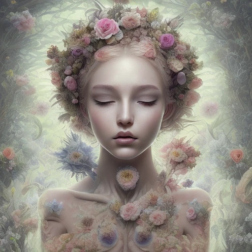 Flower Nymph:: beautiful woman, gorgeous face, soft angelic face, symmetrical features, iridescent hair, bright vibrance iridescent healthy eyes, intricate blue eyes, dark-eyeshadow and , by Akira Hiramoto, cel-shaded:: flat, skinny, obese, long neck, multiple faces, photo, pencil, armless::-1. 5 —uplight —stop 85 —ar 2:3 --warp —s 625, 777