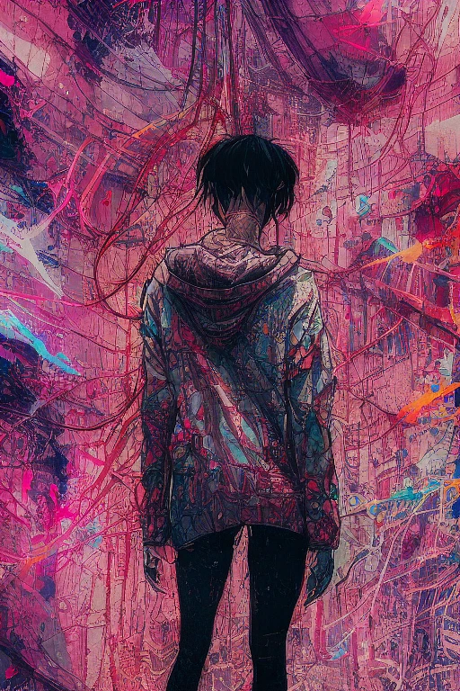 A girl wearing fancy street wear, neo tokyo, centered| intricate| highly detailed| breathtaking beauty| precise lineart| vibrant| comprehensive cinematic| Carne Griffiths| Conrad Roset, 8k, oil painting, cinematic lighting, rainy, best quality, highres, midnight