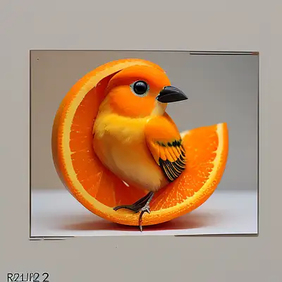 a little bird made of a fresh orange that has been cut open, photo-realistic techniques --ar 2:3 --stylize 400
