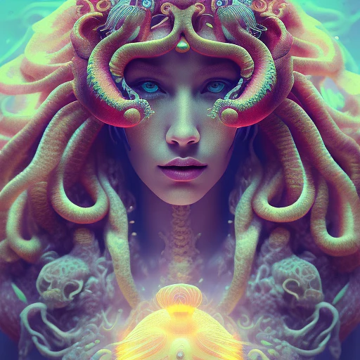 Goddess close-up portrait ribcagel. jellyfish phoenix head, nautilus, orchid, skull, betta fish, bioluminiscent creatures, intricate artwork . octane render, trending on artstation, t symmetrical artwork. cinematic, hyper realism, high detail, octane render, 8k