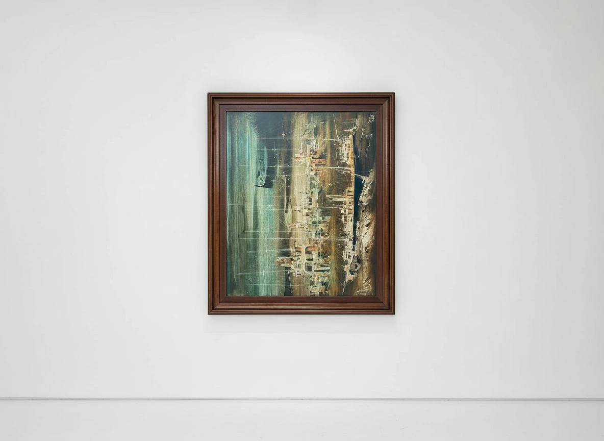 make this painting be the center of a close up, studio photo in a whitewall gallery setting
