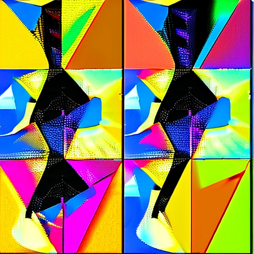 geometric abstract portrait of Frankenstein kissing the bride of Frankenstein , bright vibrant colorful, poster art --aspect 3:4