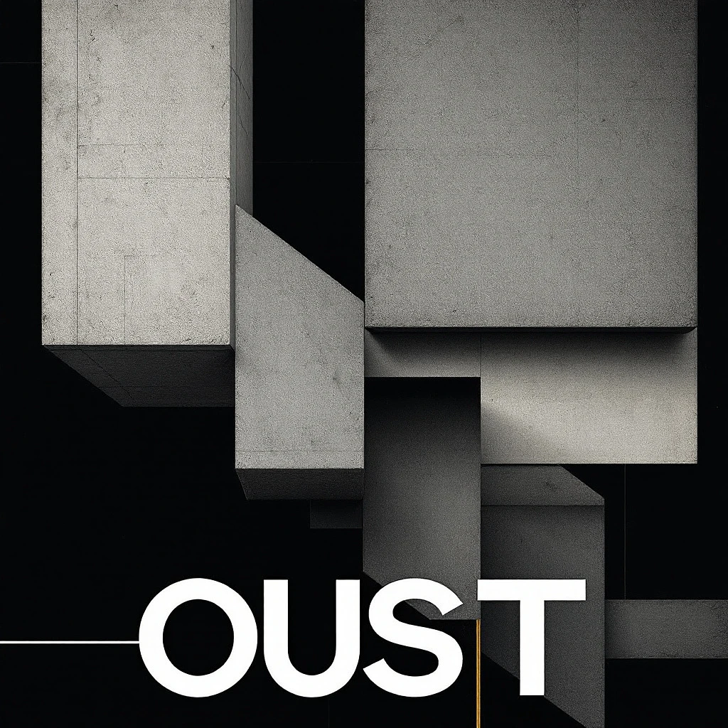 "A Brutalist-inspired poster with a minimalistic, geometric design. Use bold, sharp lines and angular shapes like rectangles and squares. The background should be dark, perhaps a deep grey or black, with high contrast. Add elements of raw concrete textures and metallic accents to reflect the industrial and utilitarian nature of Brutalism. The typography should be simple, modern, and strong, using a sans-serif font like Helvetica or Bebas Neue, in white or bright colors to stand out. Keep the poster clean, with few decorative elements, focusing on structure and simplicity. "