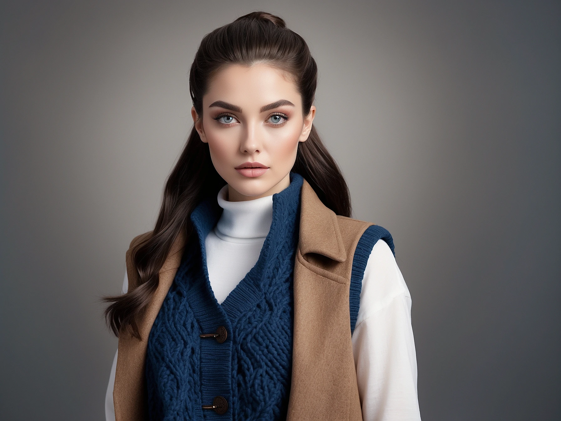 a woman with long hair wearing a sweater vest, a cross stitch by Richard Sedlon, featured on cg society, american barbizon school, behance hd, pixel perfect, rich color palette