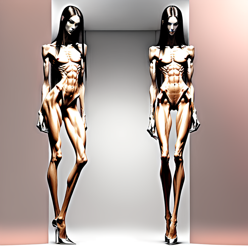 DreamShaper prompt: photo of very tall an extremely skinny, big-cheste...