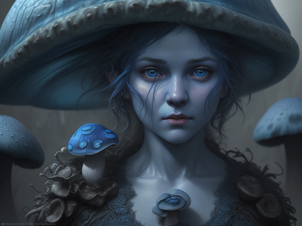 blue mushroom baby, intricate, realistic faces, detailed portraits, detailed faces, insanely detailed, vivid color, trending on artstation, 4k, hyper realistic, focused, extreme details, cinematic, masterpiece, a digital concept art by gustave dore and greg rutkowski, trending on artstation.