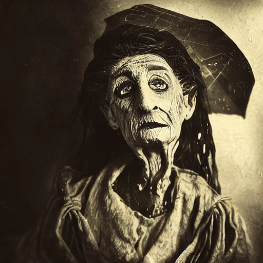 /imagine prompt: Weird old puppet lady, wet plate collodion photography, perfect composition, beautiful detailed intricate insanely detailed octane render trending on artstation, 8k artistic photography, photorealistic concept art, soft natural volumetric cinematic perfect light, chiaroscuro, award - winning photograph:: 1800s::5 salvador dali::2. 4 leather::5 --v 4 --quality 2 --chaos 75
