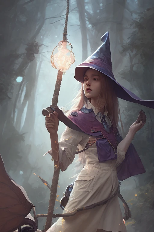 rugged girl witch wearing magic school uniform, large wide - brimmed witch hat, cinematic, elaborate, elegant, masterpiece, illustration, digital painting, concept art, trending on artstation, pixiv, art by ruan jia and hong soonsang and wlop and artgerm and greg rutkowski and alphonse mucha