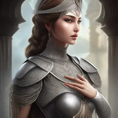 (Masterful Digital Artwork:1. 3) of (Ultra detailed:1. 3) , (raw photo ((ultra-detailed) ), Beautiful Arabic lady in the castle hall, soft face features ((ultra-detailed) ), ((photo) ), dark silver knight armor, tiara and veil (ultra-detailed) ), long black hair, brown eye, CGSociety, ArtStation