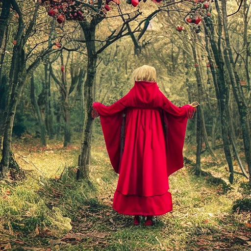Erotic Little Red Riding Hood outfit , in a fantasy wood, mystique, red cape (8K, RAW photography, Top quality, Masterpiece:1.2) , A woman、Japan aged 18, full body. She carries a basket of apples, Cake and Wine {Cinematic angle、Wide angle、Don't share the screen、} (Realistic skins 1. 4)、(Little Red Riding Hood、Wear crimson hood)、(((Red hoods、red dress、black legwear、high heels )))、(((In the dark forest、In a deep, eerie forest 、Pitch-black night、Deep fog)))((Traces of blood wiping from the mouth, , , , , , , , , , , , , , , , , , , , 、Red eyes、Black and long nails))、50mm lens、30mm film、Wide angle、(long、straight haired、)、(A dark-haired guy、The forehead is covered by bangs、)、Black people Eyes、shinny skin、nice delicate face、beautiful delicate eyes、{tiny breast、small tits、muscular body、}、very erotic, upskirt scene