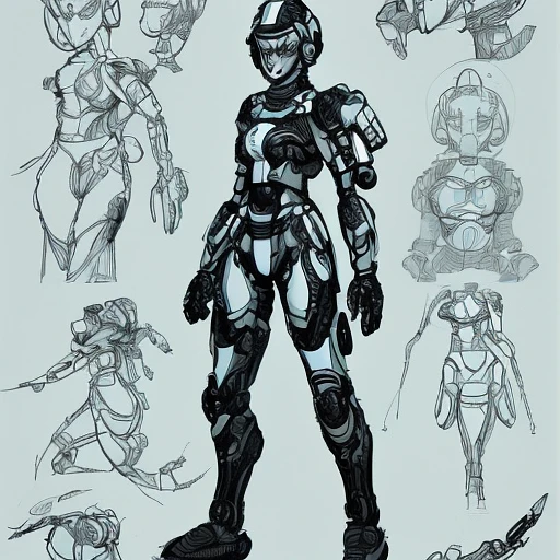 character design a futuristic beautiful female mercenary in a white and grey science fiction space suit, style by Metroid, Samus Aran, 8k, green hexagon panels, tubes and wires, intricately detailed, hyper detail intricate design coherent design purpose built, stylized, digital 2d art, concept art, artstation, pixiv, inked manga by François Schuiten, by Dan Hillier, by Paul Pope, by Artgerm, style of Shin Megami Tensei --q 5 --ar 9:16 --stylize 7000
