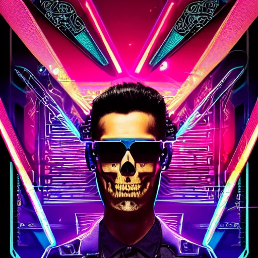 nft style, cyberpunk, synthwave, tarot card with intricate detailed frame around the outside | with cyberglasses neon, and earphone, dj sound, futuristic, gold, diamond, side profile of cyberpunk body with cyborg skull | cyberpunk | styled in Art Nouveau | insanely detailed | embellishments | high definition | concept art | digital art | vibrant, hyperdetailed, intricate, kaleidoscope, extremely beautiful, ranking ligth, cinematic lighting, photo realistic, white background max detail, ranking ligth, cinematic lighting, photo realistic, by mandy jurgens, moebus, jon foster, alphonse mucha, glazing, pablo picasso, pinot noir, chiaroscuro, leonardo da vinci, Michelangelo, 8k