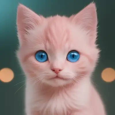 Portrait photo of cute pink kitten with fill of lightening colors, blue eyes, light bokeh, elegant, sharp focus, i, soft lighting, vibrant colors, masterpiece, (home) , 8k details, high quality, --ar 9:16