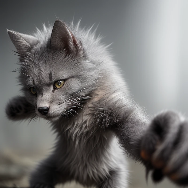 (HDR, ((8k) ), epic, detailed clothing, cinematic lighting, dramatic, evil, emotional, angry, hateful, hyperrealistic, portrait, Trending on artstation, digital painting, action, detailed eyes, 8k, fine details, sharp focus, post-apocalyptic) Ratmen Scavenger: It has sharp, twitchy movements and rough, gray fur covering its wiry frame. Long, clawed fingers reach out from each of its small, hunched hands.