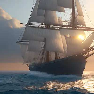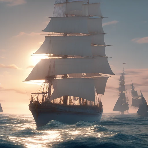 Photo of a ultra realistic sailing ship, dramatic light, pale sunrise, cinematic lighting, battered, low angle, trending on artstation, 4k, hyper realistic, focused, extreme details, unreal engine 5, cinematic, masterpiece, art by studio ghibli, intricate artwork by john william turner