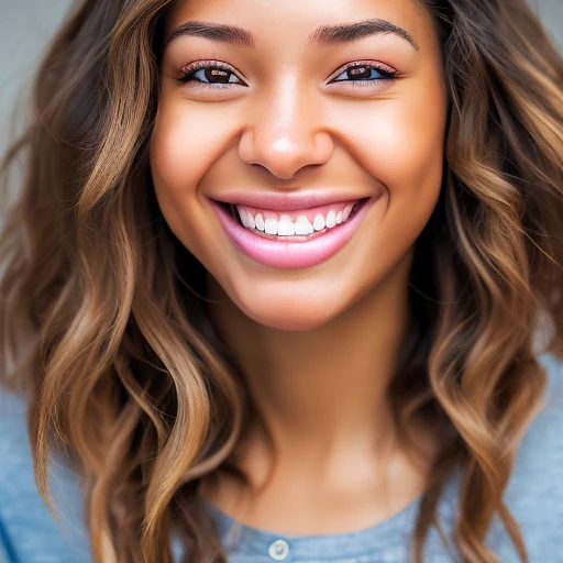 half-length portrait shot of an attractive female youth pastor, very happy, big smile, with light skin, natural, no make up, natural imperfections, hazel colored eyes, lush light brown hair, the photo should be a half-length portrait, shallow depth of field to emphasize the subject, taken using a Canon EOS R camera with a 50mm f/1. 8 lens, f/2. 2 aperture, shutter speed 1/200s, ISO 100 and natural light, Hyper Realistic Photography, Cinematic, Cinema, Hyperdetail, Ultrahd, Color Correction, ultrahd, hdr, color grading, 8k --ar 4:5 --q 2