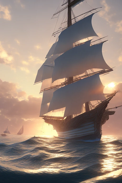 Photo of a ultra realistic sailing ship, dramatic light, pale sunrise, cinematic lighting, battered, low angle, trending on artstation, 4k, hyper realistic, focused, extreme details, unreal engine 5, cinematic, masterpiece, art by studio ghibli, intricate artwork by john william turner