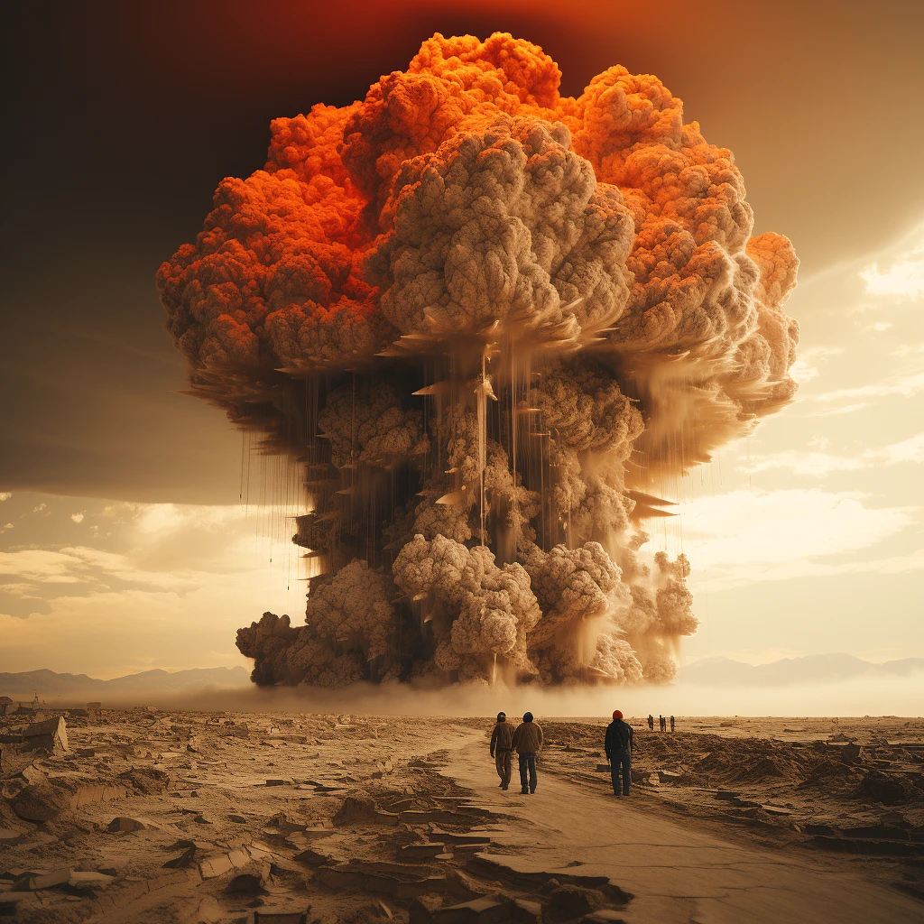 A Tsar Bomb explosion, massive, in the desert, extremely unsettling