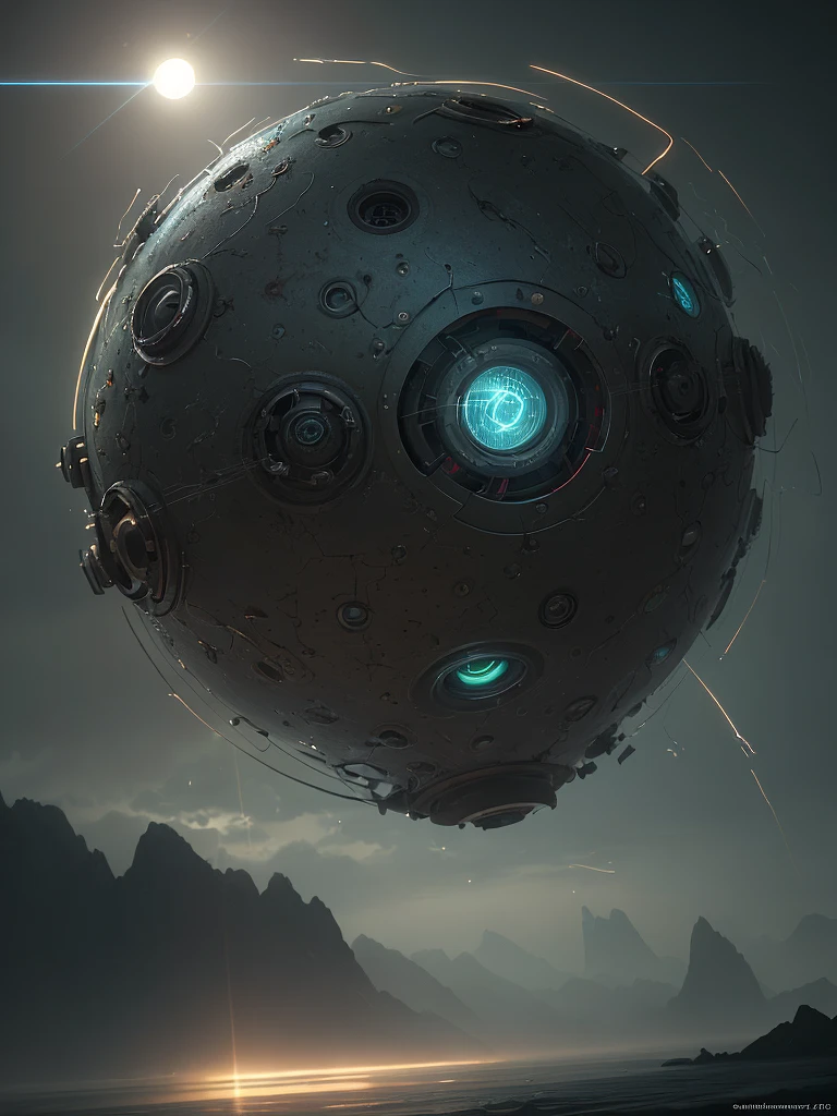 Photo of a ultra realistic atom cell, dramatic light, cinematic lighting, battered, low angle, trending on artstation, 4k, hyper realistic, focused, extreme details, unreal engine 5, cinematic, masterpiece, art by studio ghibli, intricate artwork by john william turner