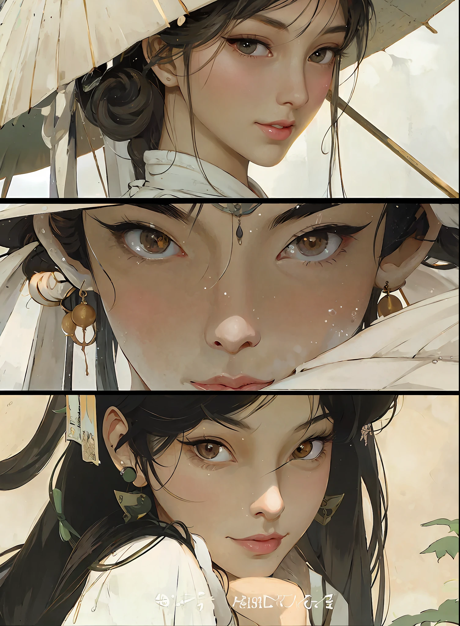 there are two pictures of a woman with an umbrella and a cat, artwork in the style of guweiz, guweiz, beautiful character painting, guweiz on artstation pixiv, guweiz on pixiv artstation, stunning anime face portrait, beautiful digital artwork, wlop rossdraws, detailed digital anime art, guweiz masterpiece