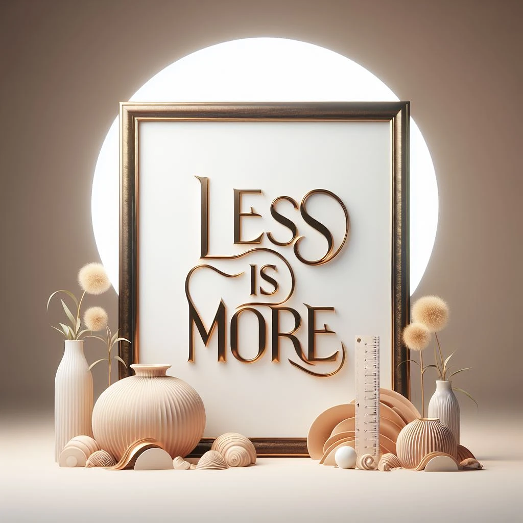Craft a minimalist yet powerful visual conveying the idea 'Less Is More. ' Utilize Octane Render in Unreal Engine 5 to create an 8K masterpiece. Employ subtle lighting and refined typographic elements against a clean background, symbolizing the beauty of simplicity. Let the final result echo the message, embodying the elegance and strength found in simplicity