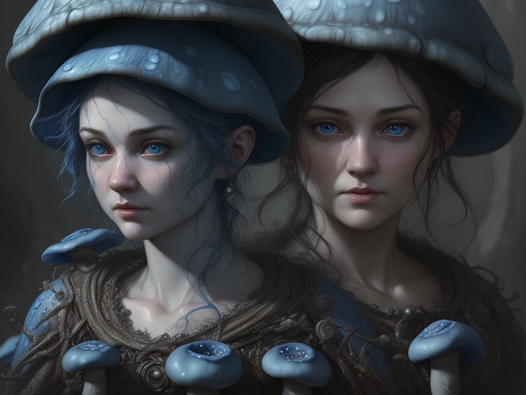 blue mushroom infant, intricate, realistic faces, detailed portraits, detailed faces, insanely detailed, vivid color, trending on artstation, 4k, hyper realistic, focused, extreme details, cinematic, masterpiece, a digital concept art by gustave dore and greg rutkowski, trending on artstation.