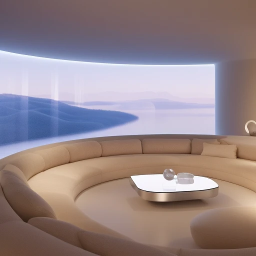 sxnfv style, This luxurious living room on a space ship boasts a panoramic window that wraps around one entire wall, offering a stunning view of the earth and the stars beyond. The furniture is plush and inviting, with plush sofas and armchairs upholstered in soft, cream-colored fabric. A large, rectangular coffee table made of clear glass sits at the center of the room, and a few decorative pillows add pops of color. A few high-tech gadgets, such as a holographic display and a floating shelf, add a futuristic touch
