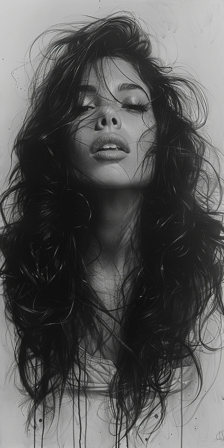 charcoal sketch, woman with long hair, hyperdetailed, smudges --ar 1:2 --stylize 750