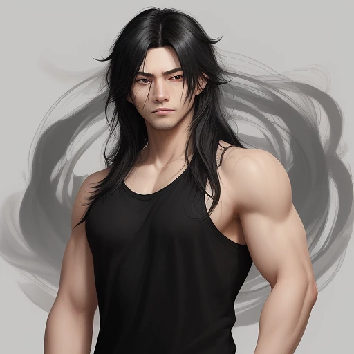 1boy, attractive, black_hair, long_hair, messy_hair, hair_between_eyes, stubble, asian, eyebrows_visible_through_hair, fit, genshin_impact_fanart, 5_o’clock_shadow, hair_between_eyes, doing_pushups, digital_art, anime, white_tanktop, sweating, shirt_drenched_in_sweat, heavy_breathing, mouth_open, open_mouth, pleasure_expression, feeling_good, moaning, art, drawing, yaoi, pleasured_expression, seduced, rule 34