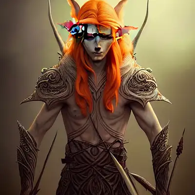 portrait painting of an elven eladrin young man with short light orange hair and freckles and tribal tattoos on his cheekbones, fur armor, ultra realistic, concept art, intricate details, eerie, highly detailed, photorealistic, octane render, 8 k, unreal engine. art by artgerm and greg rutkowski and charlie bowater and magali villeneuve and alphonse mucha