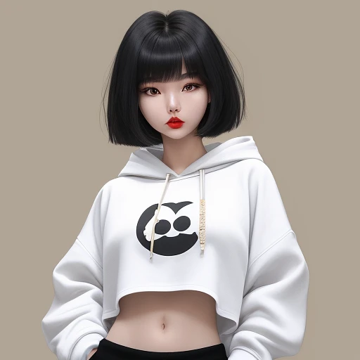 1 girl, beautiful Korean girl, (Cute Loose Bob hair) , (wearing a cropped hoodie, capri sweatpants:1. 5) , (hands in pockets:1. 5) , (red lips:1. 3) , (small breasts:1. 3) , (toned stomach:1. 3) , (eyelashes:1. 2) , (aegyo sal:1. 2) , (detailed face) , immersive background, volumetric haze, global illumination, (flowing hair) , (bright smile) , natural lighting, ((beautiful detailed eyes, symmetrical eyes) , (photorealism:1. 5) , (photorealistic:1. 4) , (8k, RAW photo, masterpiece) , High detail RAW color photo, realistic, (highest quality) , (best shadow) , (best illustration) , ultra high resolution, highly detailed CG unified 8K wallpapers, physics-based rendering, realistic, realism, high contrast, hyperrealism, f1. 6 lens, rich colors, hyper-realistic lifelike texture, cinestill 800)